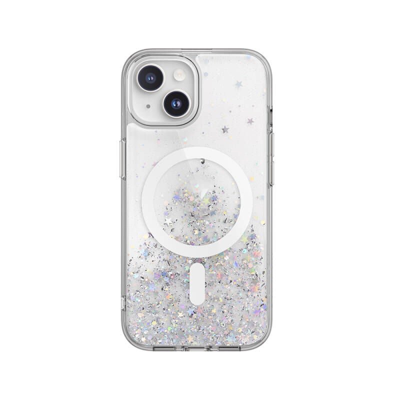 Apple iPhone 15 Kılıf Magsafe Şarj Özellikli Parlayan Simli Şeffaf Lisanslı Switcheasy Starfield-M Kapak