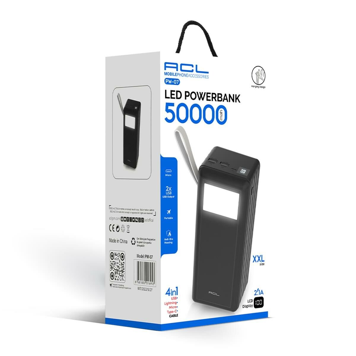 PW-07 LED Aydınlatmalı 4in1 50000 mAh Taşınabilir Şarj Aleti/Powerbank