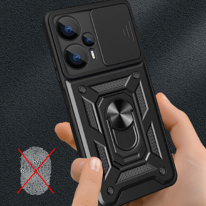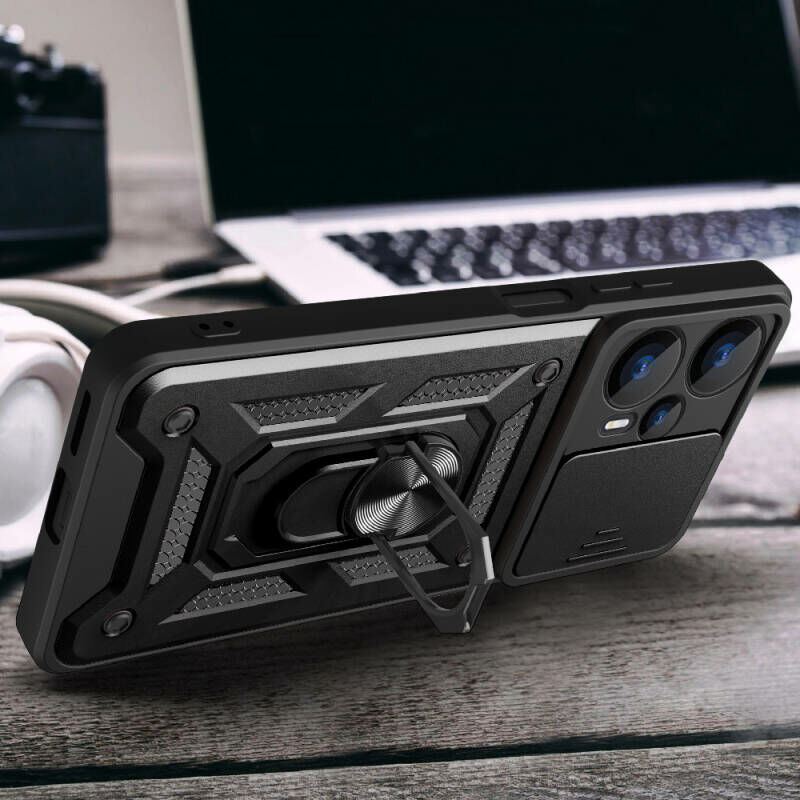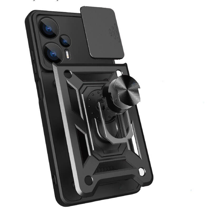 Xiaomi Poco F5 Kılıf Magnetik Standlı Kamera Korumalı Patinda Sürgülü Vega Kapak