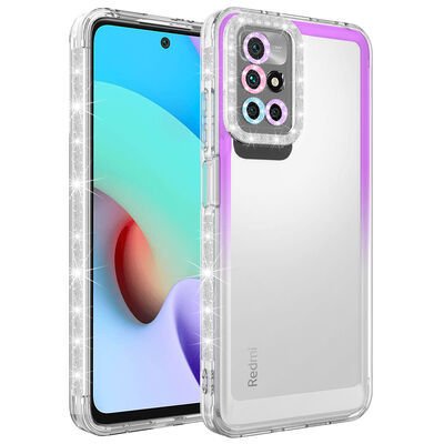 Xiaomi Redmi 10 Kılıf Simli ve Renk Geçiş Tasarımlı Lens Korumalı Patinda Park Kapak