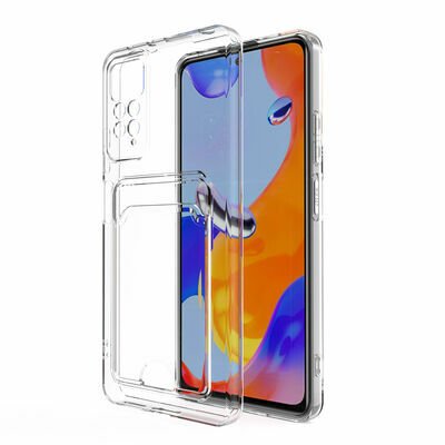 - Xiaomi Redmi Note 11S Global için özel olarak tasarlanmış kartlıklı şeffaf patinda kapak.